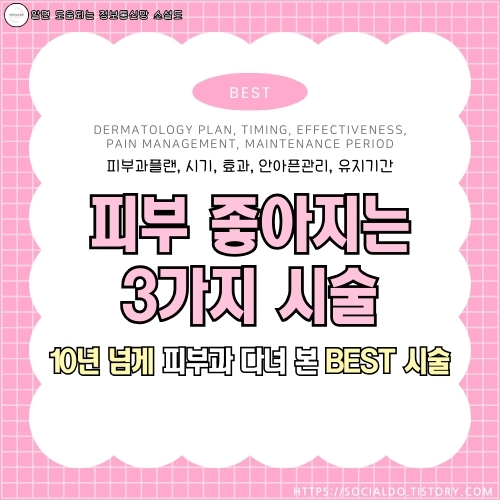 피부과 시술은 이제 단순히 피부 문제를 해결하는 것을 넘어, 건강하고 아름다운 피부를 유지하기 위한 필수적인 관리로 자리 잡았습니다. 하지만 어떤 시술이 나에게 가장 적합한지, 그리고 어떻게 관리해야 효과를 극대화할 수 있는지 고민이 많으시죠? 오늘은 10년 넘게 피부과를 다니며 경험한 피부과 베스트 시술 3가지를 소개하고, 피부과플랜, 시기, 효과, 안 아픈 관리법, 유지기간까지 자세히 알려드리겠습니다.